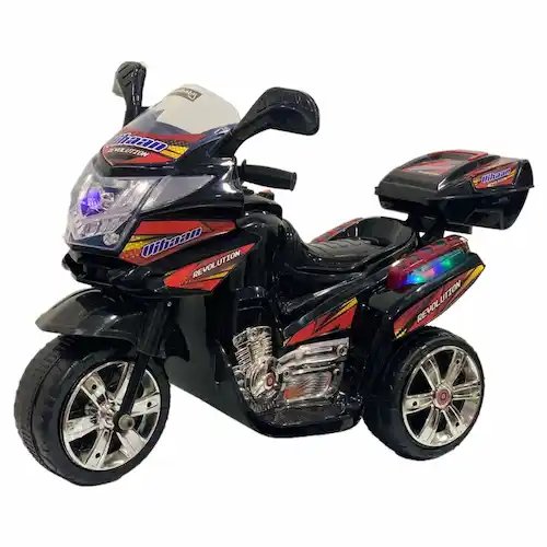 Con nuestra moto eléctrica, la diversión está asegurada. Luces LED, sonidos musicales, marcha adelante y reversa… ¡Tu hijo se sentirá como todo un piloto! Además, el baúl trasero le permitirá llevar consigo sus juguetes favoritos en todas sus aventuras.